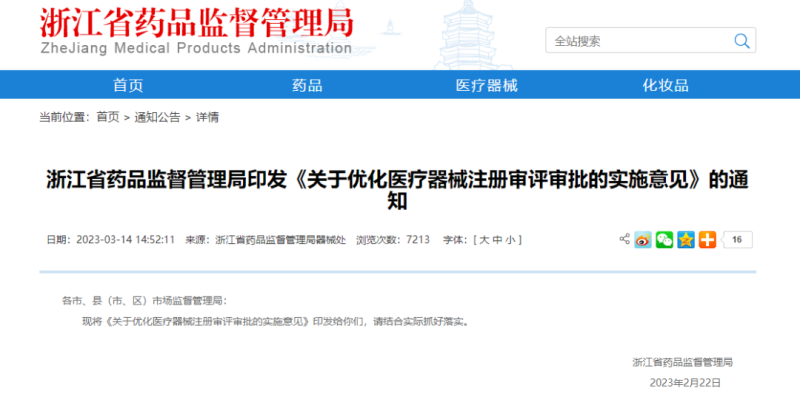 3月14日,浙江省藥監(jiān)局官網(wǎng)發(fā)布《關于優(yōu)化醫(yī)療器械注冊審評審批的實施意見》,具體內(nèi)容如下: