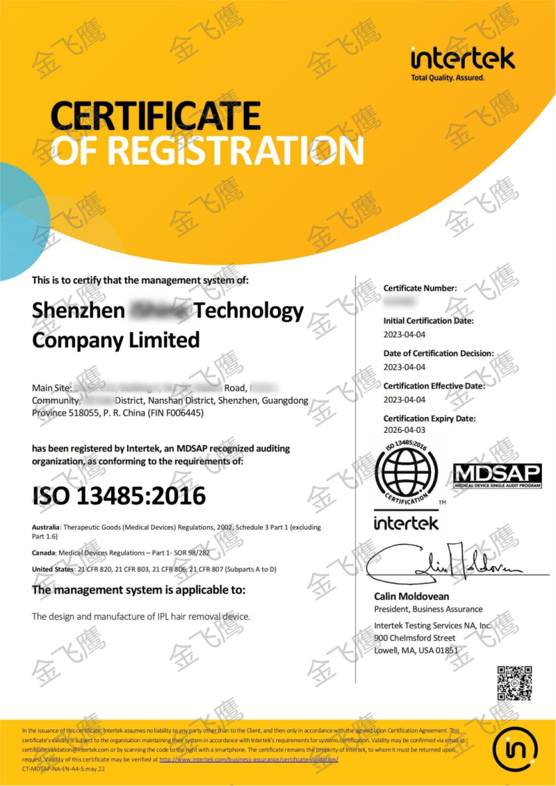 同樣,我們通過(guò)證書(shū)可以看到,該證書(shū)的生效時(shí)間為2023年4月4日,失效日期為2026年4月3日,也就是說(shuō),MDSAP證書(shū)有效期是3年。然而值得注意的是,在證書(shū)有效期內(nèi),企業(yè)需要每年接受審核機(jī)構(gòu)的監(jiān)督審核,以確保質(zhì)量管理體系持續(xù)符合MDSAP要求。此外,每個(gè)參與國(guó)家可能還有自己的要求和程序,需要遵守并進(jìn)行相應(yīng)的更新審核。