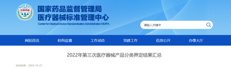 10月27日,國家藥監(jiān)局醫(yī)療器械標(biāo)管中心發(fā)布2022年第三次醫(yī)療器械產(chǎn)品分類界定結(jié)果匯總,前兩次分類界定結(jié)果請點(diǎn)擊下方鏈接查看 ?