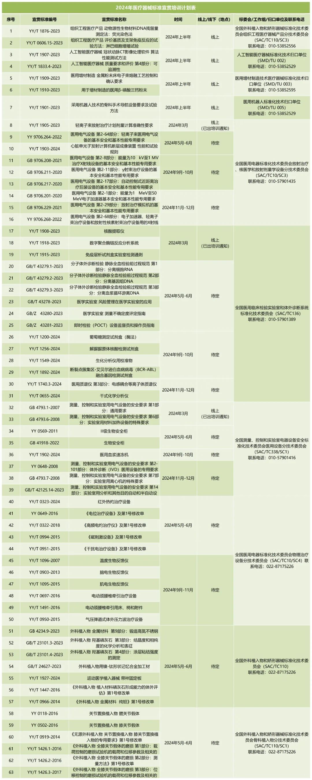 3月25日,國家藥監(jiān)局醫(yī)療器械標準管理中心發(fā)布《2024年醫(yī)療器械標準宣貫培訓計劃》,擬分批對182項醫(yī)療器械國家標準、行業(yè)標準進行宣貫培訓,具體安排如下: