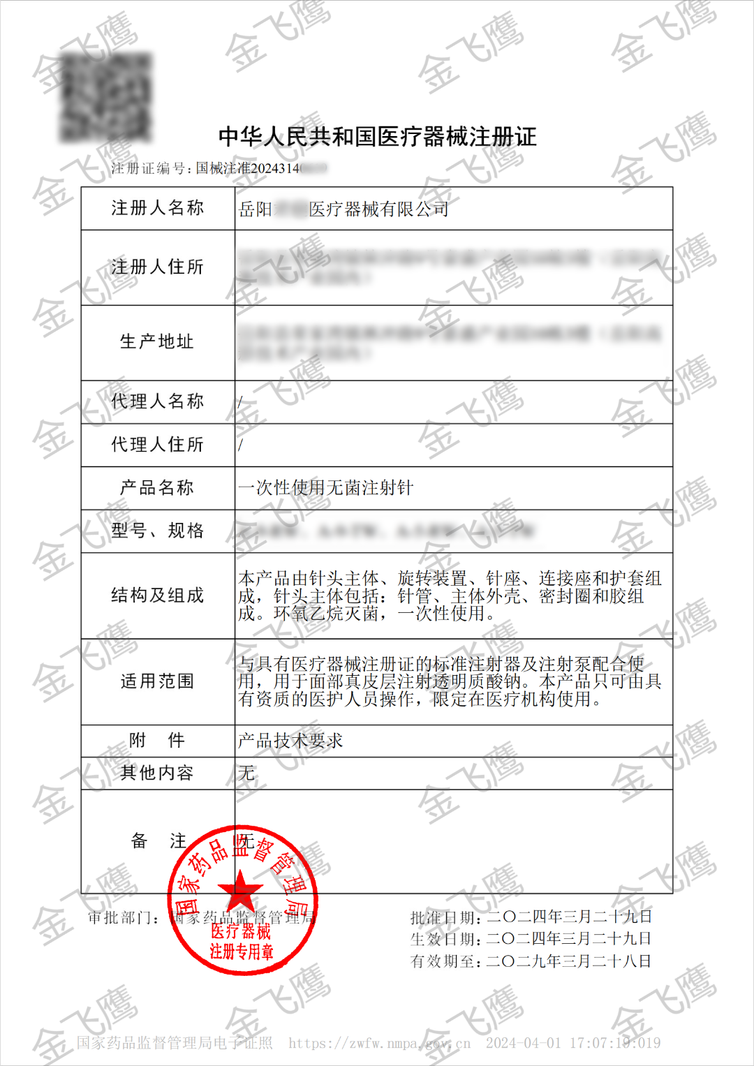 經(jīng)常關(guān)注我們的朋友也許還記得,此前我們跟大家分享過(guò)一次皮下電子注射器控制助推裝置(用于配合注射器進(jìn)行定量注射透明質(zhì)酸鈉)的成功案例,而就在近日,水光注射系列產(chǎn)品又有捷報(bào)傳來(lái)?金飛鷹輔導(dǎo)的湖南一家企業(yè)成功取得【一次性使用無(wú)菌注射針】的國(guó)內(nèi)Ⅲ類醫(yī)療器械注冊(cè)證,值得一提的是,這張Ⅲ類注冊(cè)證從受理到發(fā)證只花了不到9個(gè)月時(shí)間!