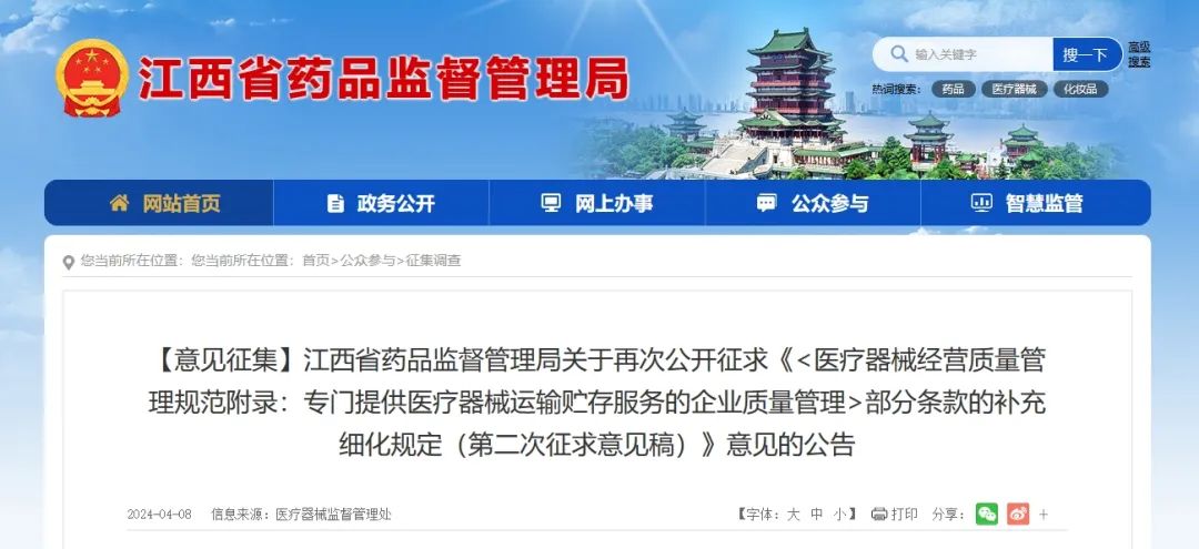 4月8日,江西省藥監(jiān)局發(fā)布《醫(yī)療器械經(jīng)營(yíng)質(zhì)量管理規(guī)范附錄:專(zhuān)門(mén)提供醫(yī)療器械運(yùn)輸貯存服務(wù)的企業(yè)質(zhì)量管理部分條款的補(bǔ)充細(xì)化規(guī)定(第二次征求意見(jiàn)稿)》(以下簡(jiǎn)稱(chēng)《細(xì)化規(guī)定》),并向社會(huì)再次公開(kāi)征求意見(jiàn)。