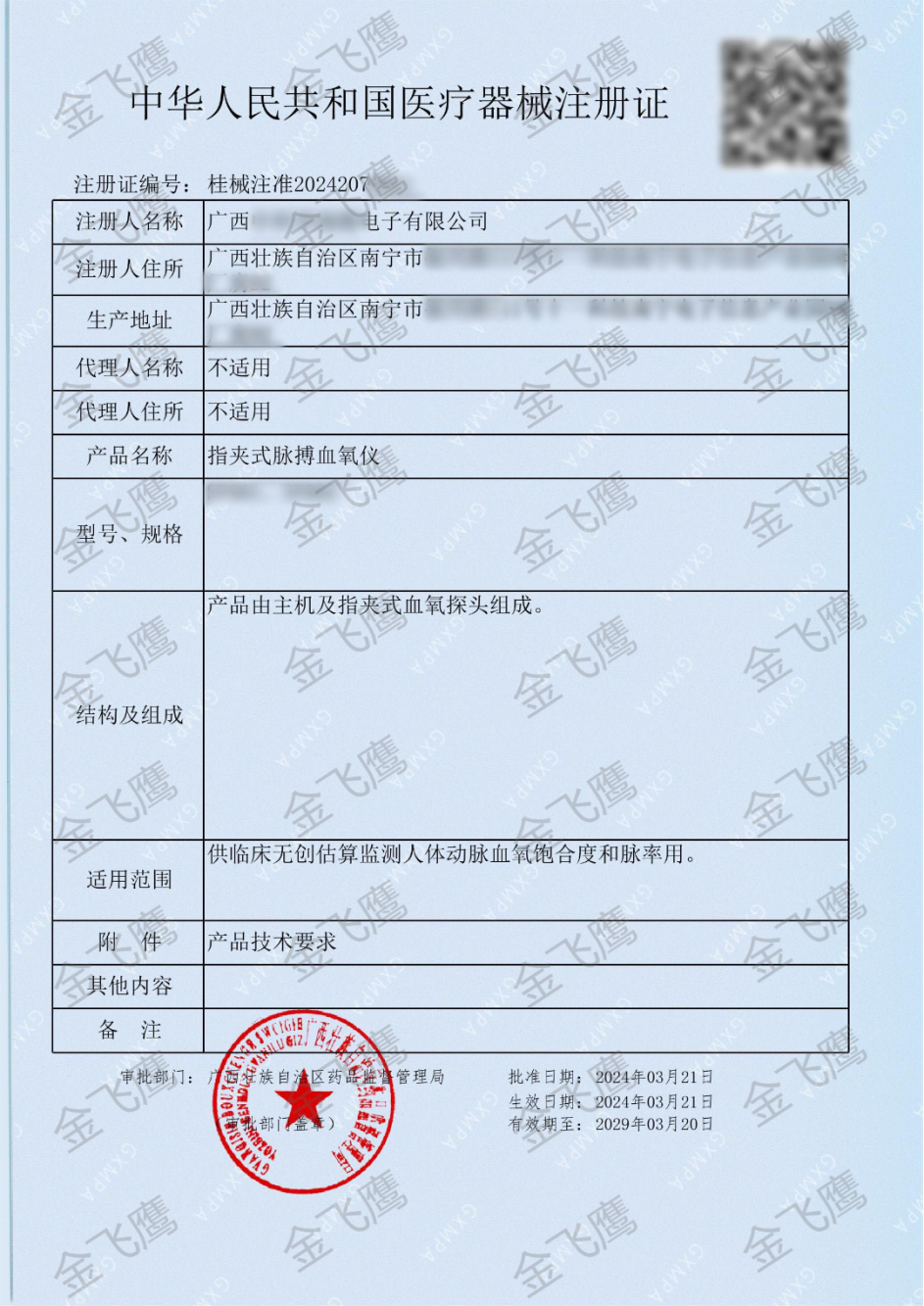 近日,金飛鷹成功輔導(dǎo)廣西一家企業(yè)取得了【指夾式脈搏血氧儀】的注冊(cè)證,借此機(jī)會(huì),我們又給大家?guī)?lái)一波血氧儀產(chǎn)品的注冊(cè)干貨。