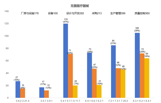 近日,“上海器審”公眾號(hào)公開(kāi)了上海市2023年度無(wú)菌醫(yī)療器械現(xiàn)場(chǎng)檢查問(wèn)題匯總及分析,其中提到,2023年度,上海市無(wú)菌醫(yī)療器械現(xiàn)場(chǎng)核查合計(jì)發(fā)現(xiàn)缺陷1666項(xiàng)。其中廠房與設(shè)施(178項(xiàng)次)、設(shè)備(100項(xiàng)次)、設(shè)計(jì)開(kāi)發(fā)(282項(xiàng)次)、采購(gòu)(213項(xiàng)次)、生產(chǎn)管理(399項(xiàng)次)、質(zhì)量控制(360項(xiàng)次)占比超九成,本期文章我們將上海器審總結(jié)的這六個(gè)方面的關(guān)鍵風(fēng)險(xiǎn)點(diǎn)及常見(jiàn)核查問(wèn)題進(jìn)行轉(zhuǎn)載,以供相關(guān)企業(yè)參考。