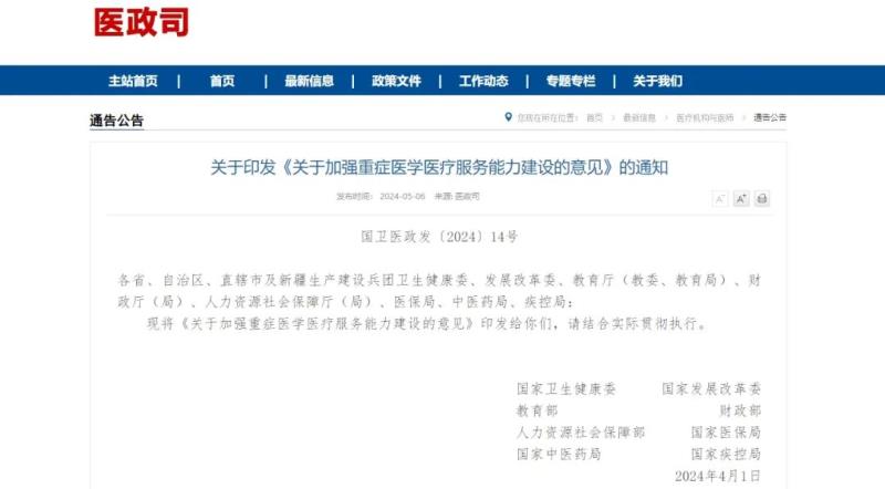 近日,大規(guī)模設(shè)備更新工作加速推進(jìn),醫(yī)療器械行業(yè)再迎利好政策。5月6日,國(guó)家衛(wèi)健委等八部門(mén)印發(fā)《關(guān)于加強(qiáng)重癥醫(yī)學(xué)醫(yī)療服務(wù)能力建設(shè)的意見(jiàn)》的通知。意見(jiàn)提出,到2025年末,全國(guó)重癥醫(yī)學(xué)床位達(dá)到15張/10萬(wàn)人,可轉(zhuǎn)換重癥醫(yī)學(xué)床位達(dá)到10張/10萬(wàn)人,相關(guān)醫(yī)療機(jī)構(gòu)綜合ICU床醫(yī)比達(dá)到1:0.8,床護(hù)比達(dá)到1:3。到2027年末,全國(guó)重癥醫(yī)學(xué)床位達(dá)到18張/10萬(wàn)人,可轉(zhuǎn)換重癥醫(yī)學(xué)床位達(dá)到12張/10萬(wàn)人,重癥醫(yī)學(xué)醫(yī)療服務(wù)資源有效擴(kuò)容,區(qū)域布局更加均衡,??品?wù)能力顯著提升。