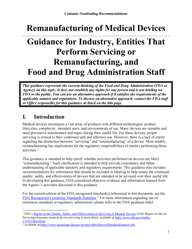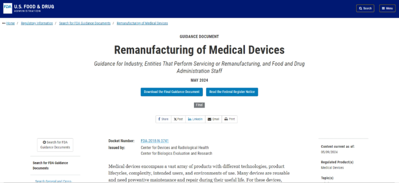 FDA動態(tài)丨“醫(yī)療器械再制造”最終指南發(fā)布