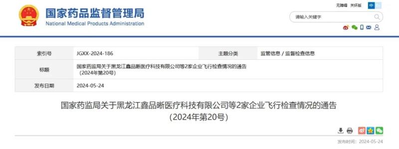 5月24日,國家藥監(jiān)局發(fā)布通告稱,近期組織對黑龍江鑫品晰醫(yī)療科技有限公司、三原富生醫(yī)療器械有限公司2家企業(yè)進行飛行檢查,發(fā)現(xiàn)這些企業(yè)質(zhì)量管理體系主要存在以下缺陷: