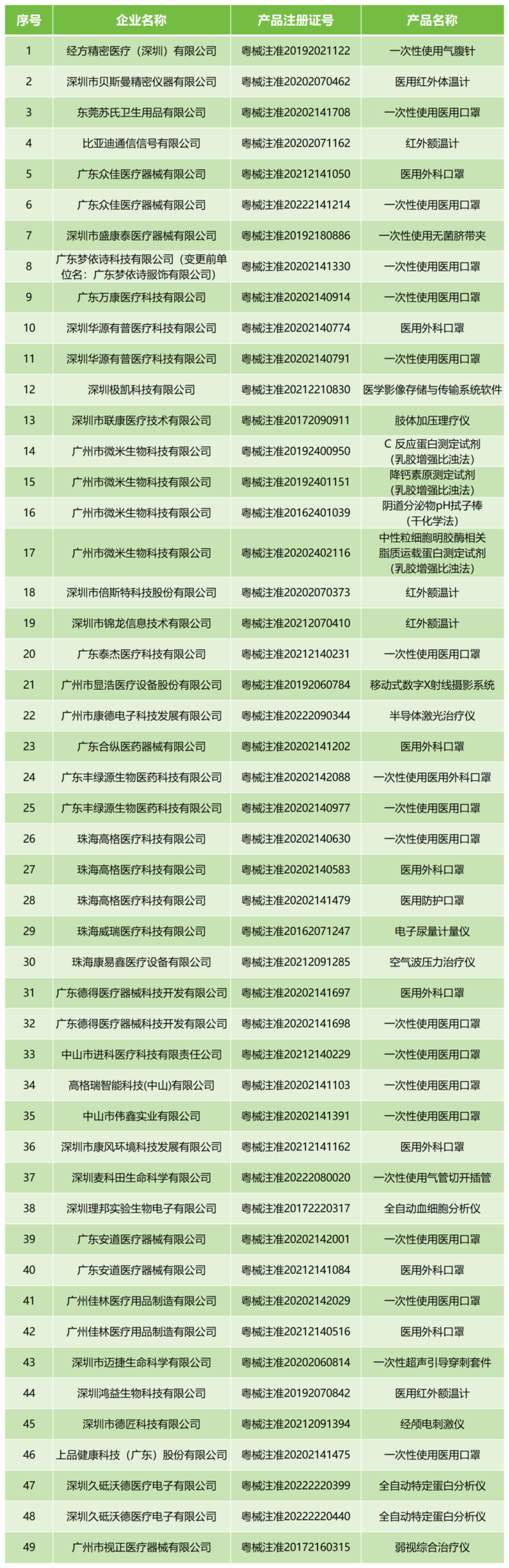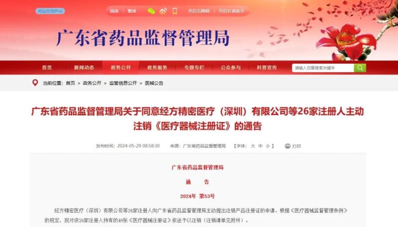 5月29日,廣東藥監(jiān)局發(fā)布通告稱,深圳市貝斯曼精密儀器有限公司、比亞迪通信信號有限公司等26家注冊人向廣東省藥品監(jiān)督管理局主動提出注銷產(chǎn)品注冊證的申請,我們通過查看附件發(fā)現(xiàn),注銷產(chǎn)品以醫(yī)用口罩居多,還有醫(yī)用紅外體溫計、半導體激光治療儀、空氣波壓力治療儀、弱視綜合治療儀等共49款產(chǎn)品。具體清單如下: