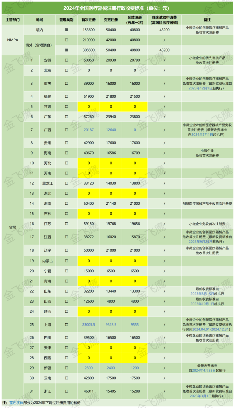今年以來,上海、新疆都發(fā)布了有關降低醫(yī)療器械注冊收費的相關公告,那么老規(guī)矩,本期文章我們將2024年【全國各省醫(yī)療器械注冊行政收費標準】進行實時更新,匯總整理如下圖,大家記得收藏備用哦!