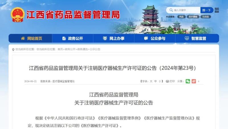 江西藥監(jiān)局:以下醫(yī)療器械生產(chǎn)許可證已被注銷!