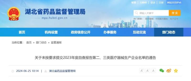 近日,湖北省藥監(jiān)局發(fā)布通告稱,湖北省轄區(qū)內(nèi)仍有部分第二、三類醫(yī)療器械企業(yè)未提交2023年度自查報告,具體名單如下: