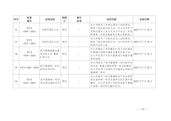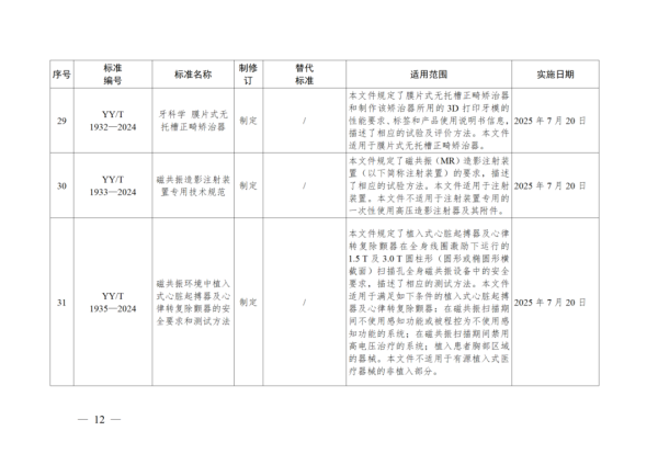 7月10日,國(guó)家藥監(jiān)局發(fā)布YY/T 1936-2024《定制式固定義齒》、YY/T 1937-2024《定制式活動(dòng)義齒》、YY/T 1932-2024《牙科學(xué) 膜片式無(wú)托槽正畸矯治器》等36項(xiàng)醫(yī)療器械行業(yè)標(biāo)準(zhǔn),其中24項(xiàng)為修訂,12項(xiàng)為修訂,最早自2025年7月20日起實(shí)施,具體清單如下: