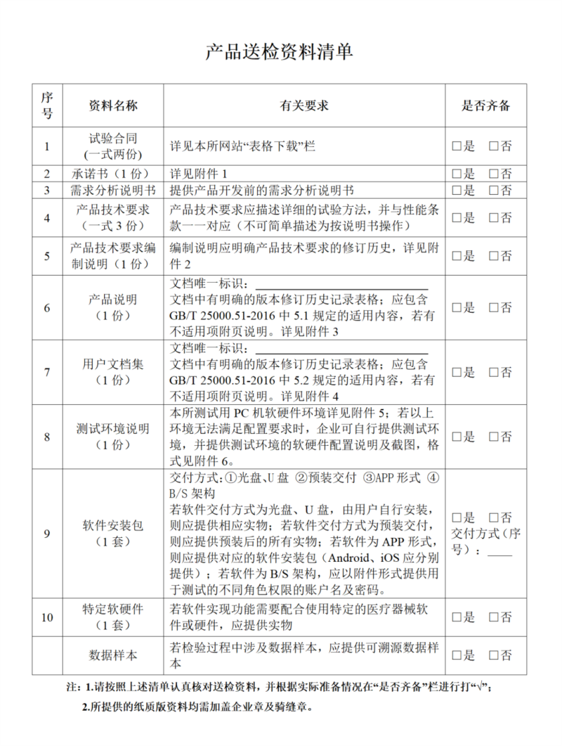 雖然其名字叫“軟件”,但作為醫(yī)療器械的一種,它跟普通醫(yī)療器械是一樣的注冊流程,在產(chǎn)品注冊前同樣需要進行樣品檢測,那么醫(yī)用軟件送檢時,需要提交哪些資料?資料的具體要求又是怎樣的呢?來自廣東省醫(yī)療器械質(zhì)量監(jiān)督檢驗所的醫(yī)用軟件產(chǎn)品送檢資料清單,大家記得收好啦: