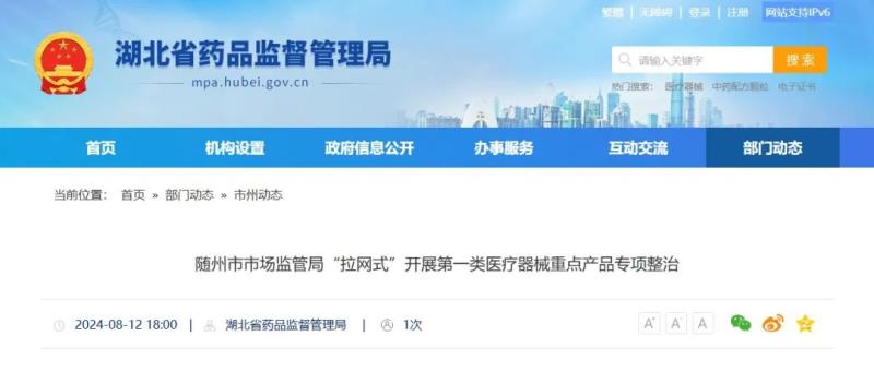 近日,湖北藥監(jiān)局發(fā)布動態(tài)稱,為進一步規(guī)范第一類醫(yī)療器械備案、生產及經營行為,保障醫(yī)療器械質量安全,隨州市市場監(jiān)督管理局根據《省藥品監(jiān)督管理局辦公室關于開展第一類醫(yī)療器械重點產品專項監(jiān)督檢查的通知》要求,在全市“拉網式”全面開展了第一類醫(yī)療器械重點產品專項整治。