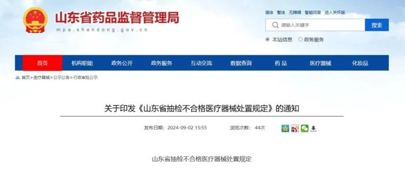 9月2日,山東省藥監(jiān)局發(fā)布《山東省抽檢不合格醫(yī)療器械處置規(guī)定》(以下簡稱《規(guī)定》),適用于山東省行政區(qū)域內(nèi)實施的國家醫(yī)療器械抽檢(以下簡稱國抽)、省級醫(yī)療器械抽檢(以下簡稱省抽)以及外省藥品監(jiān)督管理部門抽檢發(fā)現(xiàn)的我省生產(chǎn)的不合格醫(yī)療器械處置工作。《規(guī)定》具體內(nèi)容如下: