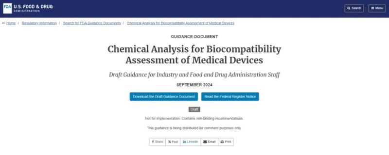 近日,F(xiàn)DA發(fā)布有關(guān)醫(yī)療器械生物相容性化學(xué)表征評估的指南草案,該草案的征求意見期為60天。