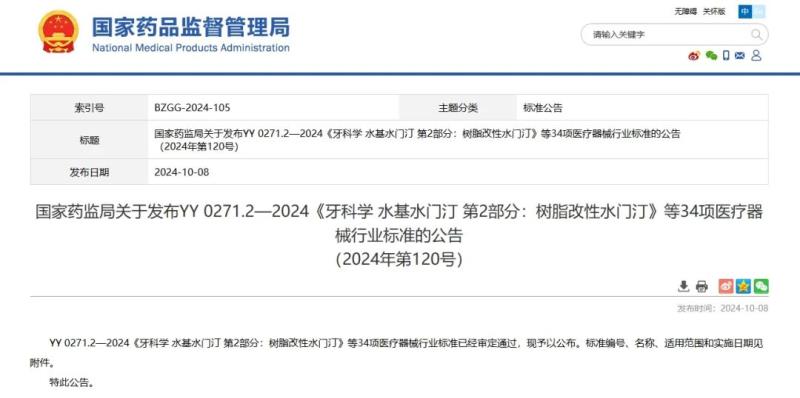 10月8日,國(guó)家藥監(jiān)局發(fā)布YY/T 1938-2024《醫(yī)用透明質(zhì)酸鈉敷料》、YY/T 0109-2024《醫(yī)用超聲霧化器》、YY/T 1930-2024《醫(yī)療器械臨床評(píng)價(jià) 術(shù)語(yǔ)和定義》等34項(xiàng)醫(yī)療器械行業(yè)標(biāo)準(zhǔn),其中21項(xiàng)為修訂,13項(xiàng)為制定,最早自2025年10月15日起實(shí)施。