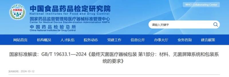 近日,中檢院官網(wǎng)發(fā)布了對國家標準GB/T 19633.1-2024《最終滅菌醫(yī)療器械包裝 第1部分:材料、無菌屏障系統(tǒng)和包裝系統(tǒng)的要求》的解讀,我們將其轉載如下: