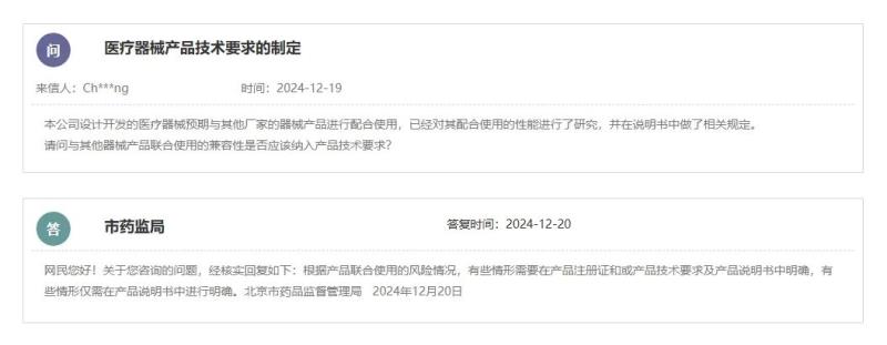 根據(jù)北京市藥監(jiān)局的答復(fù),根據(jù)產(chǎn)品聯(lián)合使用的風(fēng)險(xiǎn)情況,有些情形需要在產(chǎn)品注冊(cè)證和或產(chǎn)品技術(shù)要求及產(chǎn)品說明書中明確,有些情形僅需在產(chǎn)品說明書中進(jìn)行明確。
