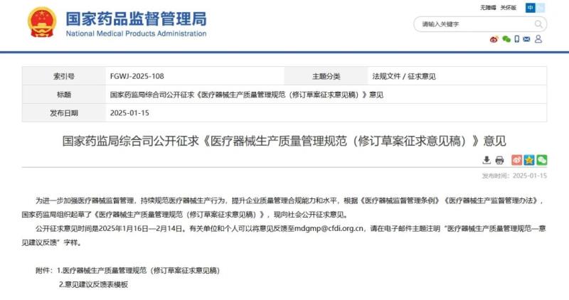 1月15日,國家藥監(jiān)局發(fā)布《醫(yī)療器械生產(chǎn)質(zhì)量管理規(guī)范(修訂草案征求意見稿)》(以下簡稱“新版《規(guī)范》”),并向社會公開征求意見。
