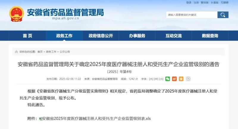 日前,安徽省藥監(jiān)局公布了2025年度醫(yī)療器械注冊人和受托生產(chǎn)企業(yè)監(jiān)管級別企業(yè)名單,我們通過查看附件發(fā)現(xiàn),共有536家企業(yè),其中有69家企業(yè)為四級監(jiān)管,52家企業(yè)為三級監(jiān)管,其余415家企業(yè)為二級監(jiān)管。我們將四級監(jiān)管企業(yè)名單摘錄如下: