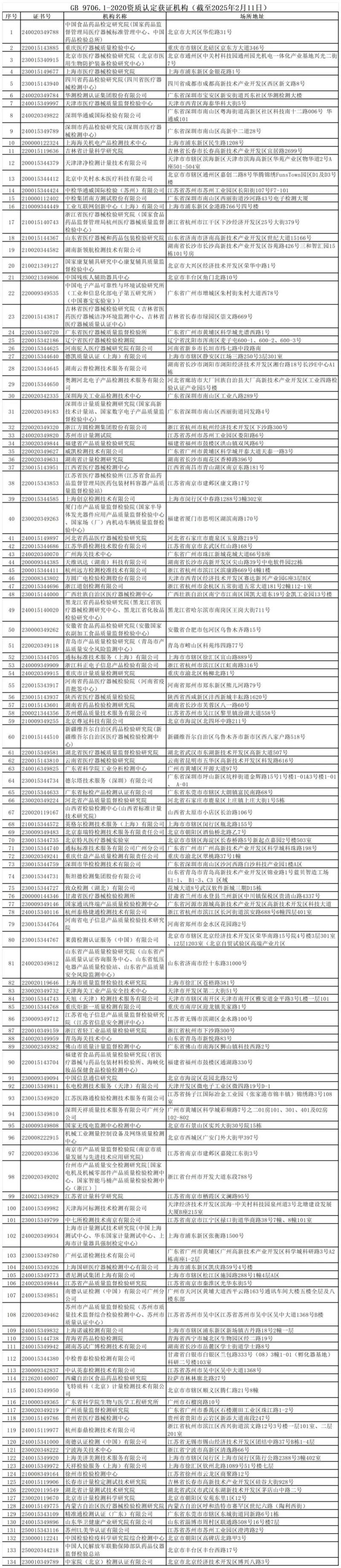 ↑ GB 9706.1-2020資質(zhì)認(rèn)定獲證機(jī)構(gòu)明細(xì)