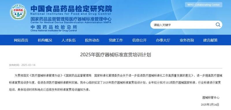 近日,國家藥監(jiān)局醫(yī)療器械標(biāo)準(zhǔn)管理中心組織擬定并對外公開了2025年醫(yī)療器械標(biāo)準(zhǔn)宣貫培訓(xùn)計劃。根據(jù)該通知內(nèi)容,全年器械標(biāo)管中心擬分批對181項醫(yī)療器械國家標(biāo)準(zhǔn)、行業(yè)標(biāo)準(zhǔn)進(jìn)行宣貫培訓(xùn),大致安排如下(具體培訓(xùn)時間和地點(diǎn)后續(xù)會發(fā)布標(biāo)準(zhǔn)宣貫培訓(xùn)通知):
