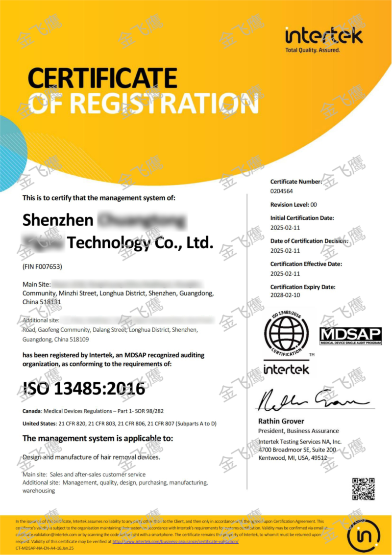 近日,金飛鷹成功輔導(dǎo)深圳一企業(yè)完成脫毛儀產(chǎn)品的MDSAP認(rèn)證(該企業(yè)本次認(rèn)證主要針對(duì)美國和加拿大兩個(gè)市場),標(biāo)志著該企業(yè)的質(zhì)量管理體系已符合國際最高標(biāo)準(zhǔn),為其全球化布局奠定堅(jiān)實(shí)基礎(chǔ)!