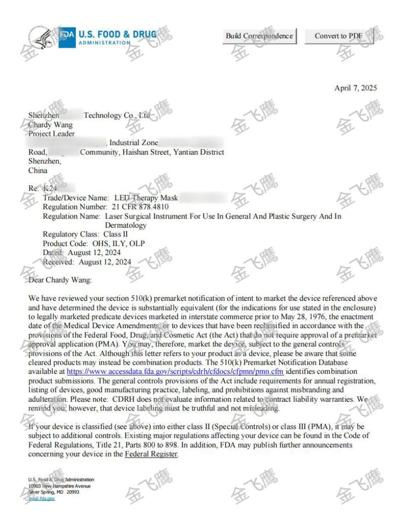 獲批LED面罩的510(k)