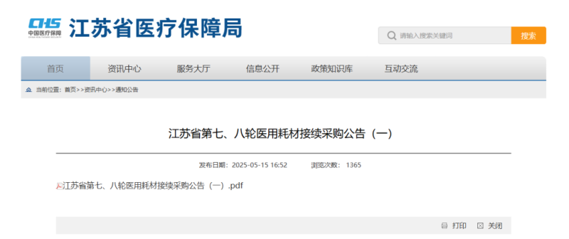 申報(bào)路徑:登錄江蘇省招采子系統(tǒng)-耗材招采管理-帶量采購(新)-省級帶量采購-省第七、八輪接續(xù)。