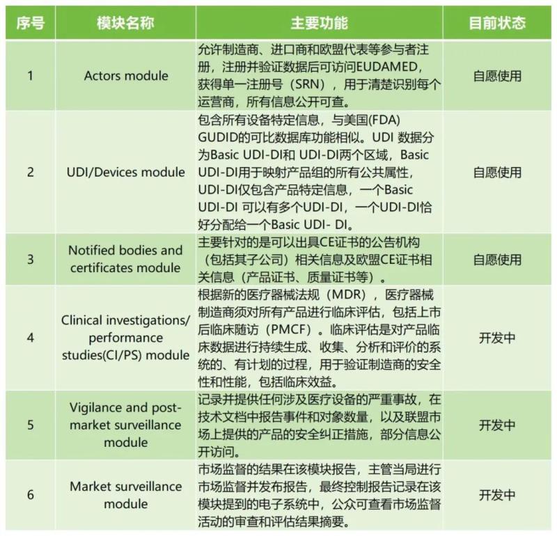 首先,我們先來回顧一下,EUDAMED共包括以下六大模塊: