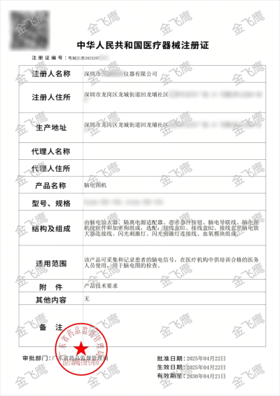 近日,金飛鷹輔導(dǎo)廣東兩家企業(yè)成功取得【腦電圖機(jī)】的注冊(cè)證,老規(guī)矩,本期文章就跟大家分享一下此類產(chǎn)品注冊(cè)的相關(guān)事項(xiàng)。