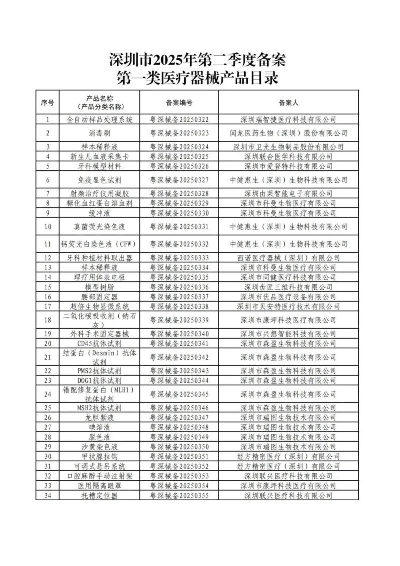 近日,深圳市市場(chǎng)監(jiān)督管理局公布了2025年第二季度備案的第一類醫(yī)療器械產(chǎn)品目錄,包括消毒刷、樣本稀釋液、牙科模型材料、射頻治療儀用凝膠、理療用體表電極、模型樹脂、腰部固定器、免疫顯色試劑、血細(xì)胞分析用溶血?jiǎng)?/span>等共計(jì)469個(gè)產(chǎn)品,具體如下:
