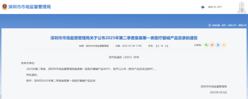 另?yè)?jù)該局公告,2025年第一季度,在深圳市市場(chǎng)監(jiān)督管理局備案的第一類醫(yī)療器械共有321個(gè),也就是說(shuō),2025年前兩個(gè)季度共完成近800個(gè)產(chǎn)品備案,也側(cè)面反映了市場(chǎng)需求之多。如您的企業(yè)有一類醫(yī)療器械產(chǎn)品備案需求,歡迎隨時(shí)聯(lián)系我們咨詢!