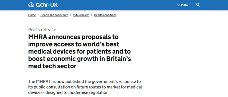 近日,英國MHRA(Medicines and Healthcare products Regulatory Agency)發(fā)布了一項政策更新,明確未來醫(yī)療器械監(jiān)管的核心方向。這一調(diào)整將直接影響所有計劃進入英國市場的制造商,以下是關(guān)鍵要點解析:
