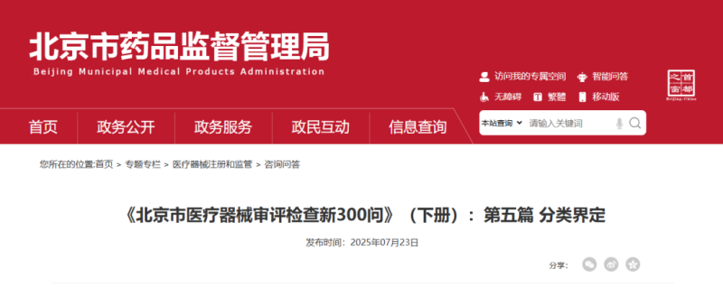 自今年6月以來,北京市醫(yī)療器械審評檢查中心持續(xù)推出了《北京市醫(yī)療器械審評檢查新300問》(下冊),此前我們已轉(zhuǎn)載了有源產(chǎn)品、質(zhì)量管理體系、創(chuàng)新醫(yī)療器械的相關(guān)內(nèi)容,本期文章我們繼續(xù)轉(zhuǎn)載有關(guān)“分類界定”的6個(gè)咨詢問答,大家別忘收藏備用哦