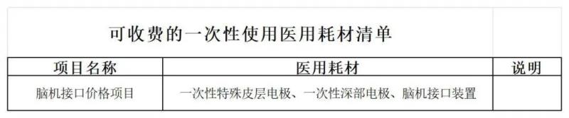↑ 可收費的一次性使用醫(yī)用耗材清單(如一次性特殊皮層電極、一次性深部電極等)