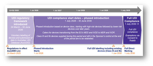TGA在此前發(fā)布的Complying with the Unique Device Identification timeframes for medical devices中提到,TGA將在5年內(nèi)引入UDI:首先是高風(fēng)險(xiǎn)醫(yī)療器械的合規(guī)性,然后是低風(fēng)險(xiǎn)設(shè)備的合規(guī)性。